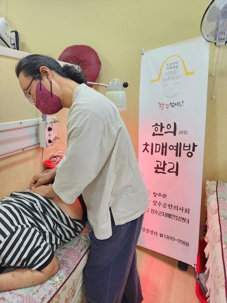 박점숙 보건사업과장은 “치매관리 사각지대에 있는 경도인지장애자 및 인지저하 자 치료에 한의치료를 적극 활용하고 있다”며 “유병 률 을 억제하는 데 최선을 다해 장수군의 ‘삶의 질’을 높이는 데 기여하도록 하겠다.”고 말했다.
