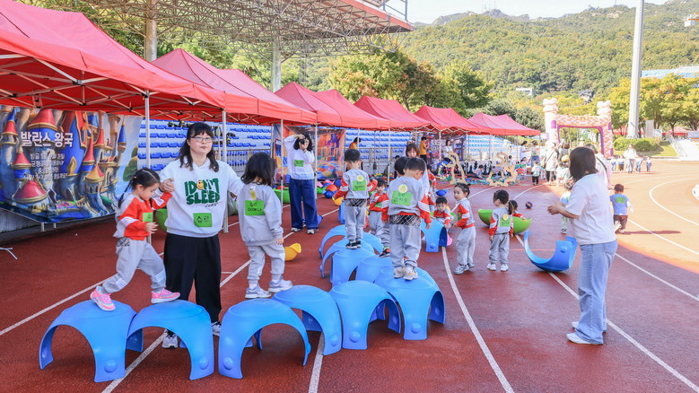 [과천시 세계타임즈=송민수 기자] 과천 관문체육공원에서 지난 16일, 지역 내 어린이집 영유아와 보육교직원 등 2천여 명이 참여한 ‘어린이집 한마음 체육대회’가 열렸다.