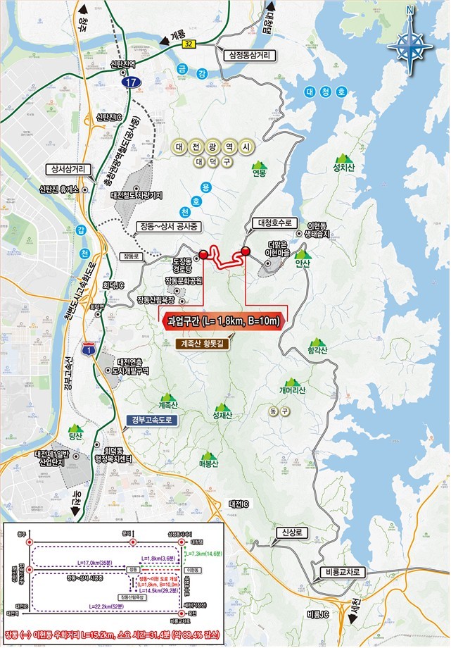 대덕구는 대청호에서 계족산으로 이어지는 ‘대청호 관광·레저벨트’ 조성을 위해 ‘장동~이현간 도로 신설사업’을 본격 추진하고 있다.