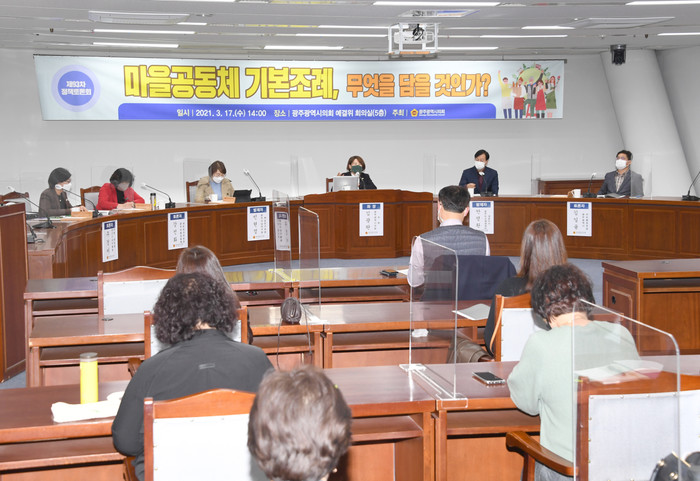 [광주=세계타임즈 손권일 기자] 17일, 광주시의회 예산결산특별위원회실에서 「마을공동체 기본 조례」 마련을 위한 정책토론회가 개최됐다.