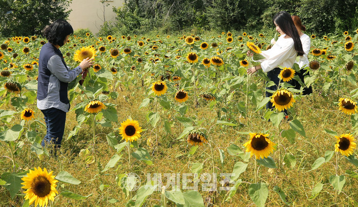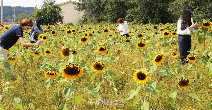 청안면 관계자는 “올해 유난히 심한 가뭄과 무더운 불볕 더위에 해바라기가 시들어 갈까봐 새마을지도자들과 공무원들이 수시로 물을 주고 잡초제거를 하는 등 관리에 정성을 들여 예쁜 해바라기 꽃이 피었다”며 “해바라기의 꽃말은 숭배, 그리움, 기다림으로 누구든 반갑게 웃어주고 기다리는 해바라기 꽃동산에서 잠시나마 마음의 치유를 받았으면 좋겠다”고 전했다.