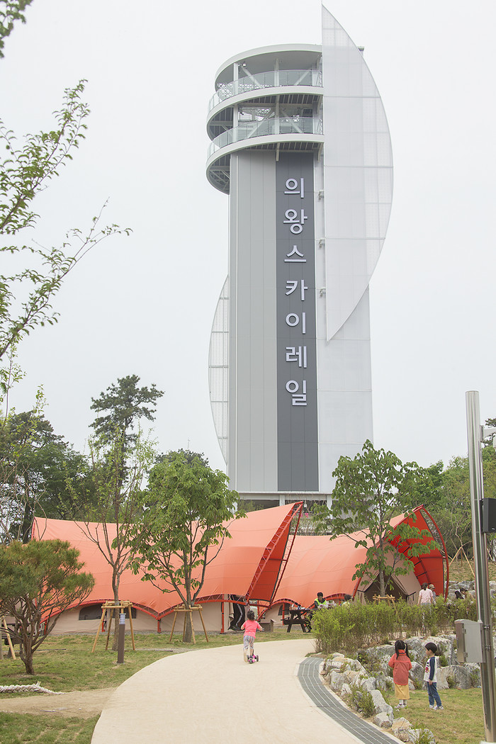 캠핑장 근처에는 짚와이어 레저시설인 ‘의왕스카이레일’이 새롭게 문을 열고 관광객들의 발길을 끌고 있다. 스카이레일은 자연학습공원 내에 세워진 41m 높이의 타워에서 레일바이크 매표소까지 350m를 하강하는 3개의 라인으로 구성된다.