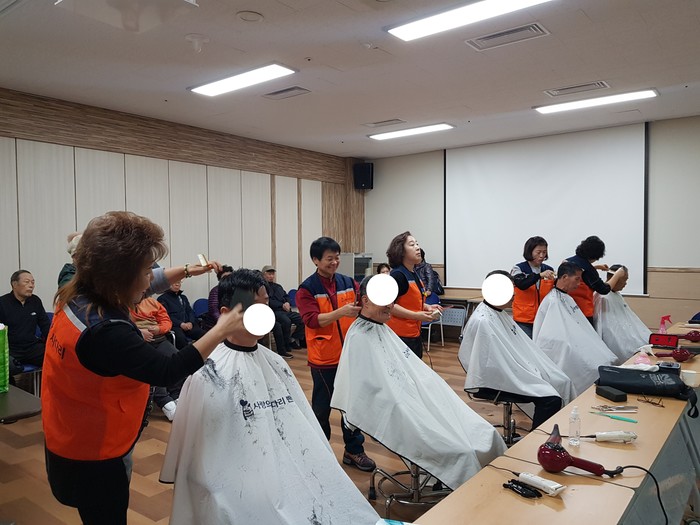 이날 미용봉사는 송남석 단장을 비롯해서 김미경 이하영 조선옥 조은숙 가위천사들이 40여명의 장애인들에게 미용봉사를 하였다.
