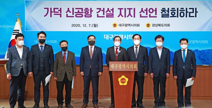 대구시의회와 경북도의회는 성명서를 통해 부·울·경 지역 정치권이 보궐선거를 위해 5개 시·도의 영남권 신공항 합의를 헌신짝처럼 던져버리고, 일방적으로 들고 나온 ‘가덕신공항’ 주장에 대해 전국 14개 시·도의회 의장들이 아무런 명분도 없이 동참해 지지를 선언한 것에 대해 매우 부적절한 처사로 규정하고, 즉각 철회할 것을 촉구 했다.