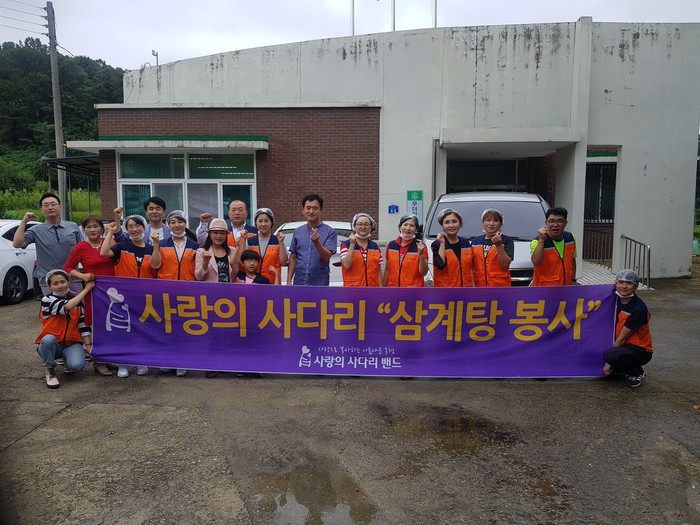 [대전=세계타임즈 이장성 기자] 대전시 소외계층을 위해서 다양한 봉사활동을 실천하고 있는 대전시 SNS 8천명 봉사단체 사단법인 사랑의 사다리 밴드(리더 이정제)는 27일, 오전9시~오후2시, 동구 세천동 식장산 입구에 위치한 삼곡경로당에서 삼계탕 및 위문공연 봉사로 사회적 효행을 실천 하였다.
