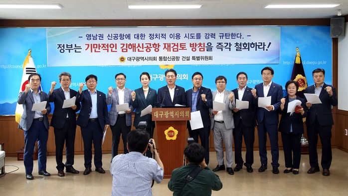 홍인표 대구시의회 통합신공항 건설 특별위원회 위원장은 “영남권 신공항은 정치도구화 할 사안이 아니며, 국토 균형발전과 영남권 5개 시·도가 합의해 추진하고 있는 지역 최대의 상생협력 사업임을 잊지 말아야 할 것”이라면서 “통합신공항 건설 사업은 흔들림 없이 추진되어야 할 것”이라고 밝혔다.