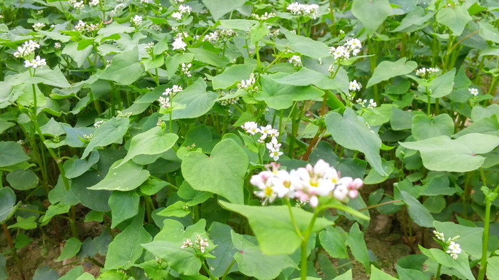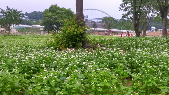 경주 동궁원 녹색관광탐방로 교량주변 하천부지에 가는 오월이 아쉬워 붙잡는 듯 메밀꽃이 만발해 하얀 꽃밭을 드리웠다.