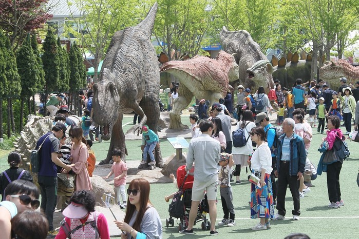 야외박물관으로 조성된 공룡공원에는 세계 최대 높이(24m)의 공룡탑을 비롯해 10여점의 공룡조형물, 공룡놀이터, 꽃동산, 소동물원 등아이들이 맘껏 뛰어놀 수 공간이 조성돼있다.