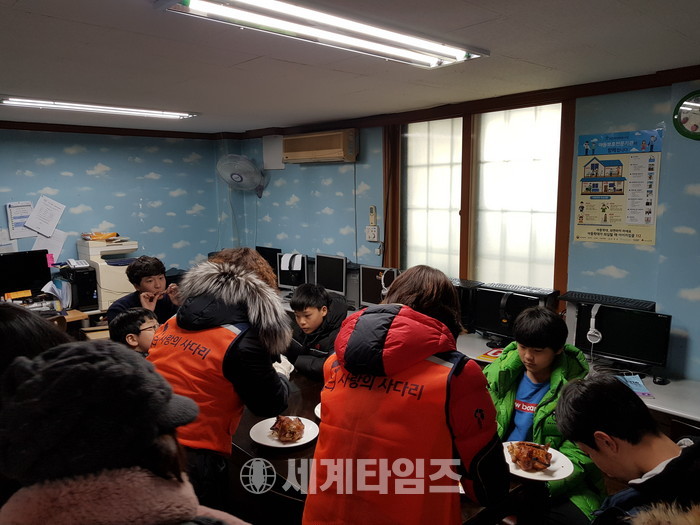 [대전=세계타임즈 이장성 기자] 6천명 봉사단체인 사랑의 사다리 밴드(리더 이정제)는 24일 오전10시~오후1시에 유성구 진잠에 위치한 하늘꿈지역아동센터(원장 전대진)의 50명의 아이들에게 바베큐 통닭 봉사로 우리 사회의 따뜻한 사랑을 전달하였다.