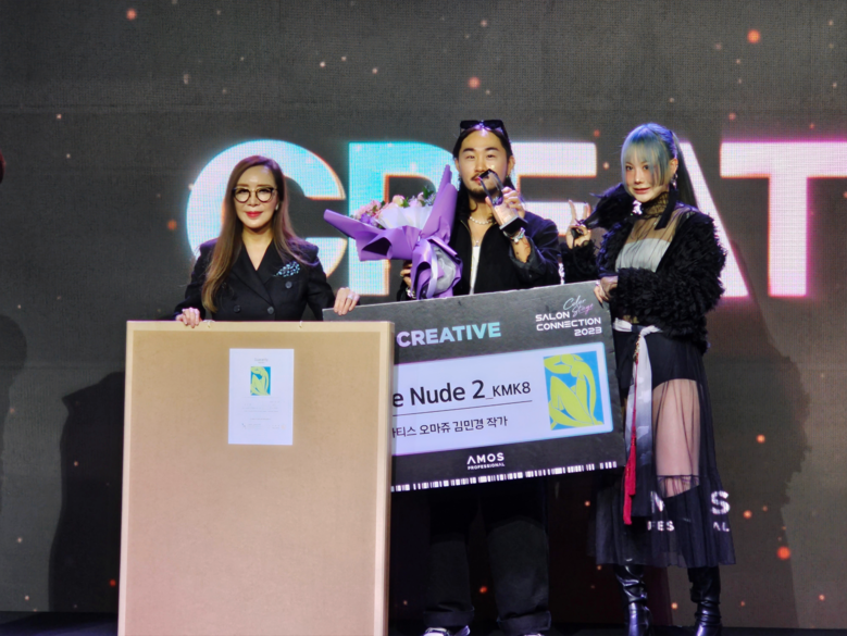 끝으로 "헤어프로페셔널 시장에서도 오늘 행사를 통해 활동 기준을 정하는 데 좋은 영향이 되길 바란다"라고 참가자들에게 축하의 말을 전했다. 이어진 아모스프로페셔널 '살롱 커넥션 2023'의 피날레 컬러스테이지 TOP 10을 시상하는 자리에서 크리에이티브 상 시상자로 김민경 작가가 나서 뉴트로 작품을 선보인 엘즘 양리헤어 디자이너를 시상했다.