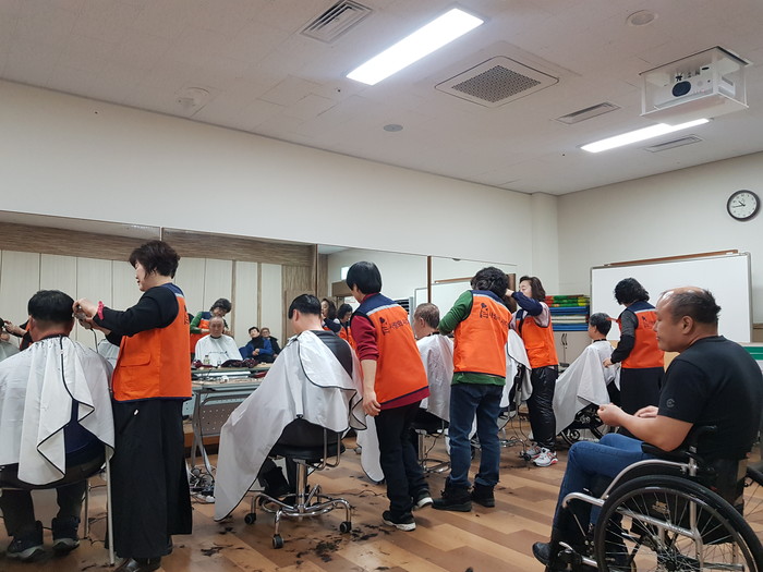 송남석 미용봉사 단장은 “미용봉사후 깔끔해진 장애인분들의 모습에서 행복과 보람을 느낀다.”고 말했다.