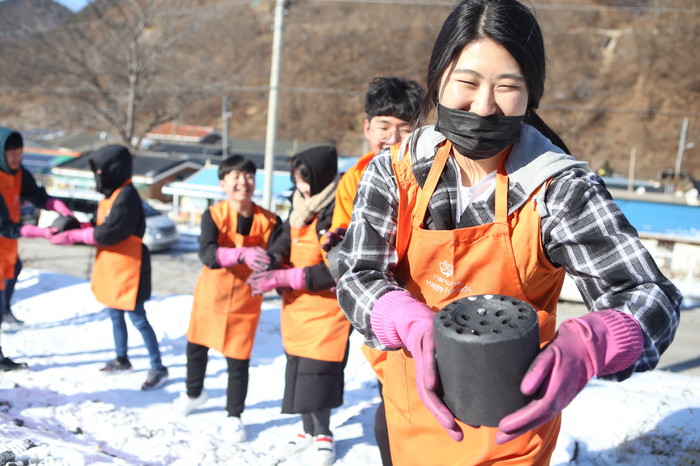 한화해피프렌즈 청소년봉사단 330여명, 강원도 폐광지역에 연탄 6만여장 전달
