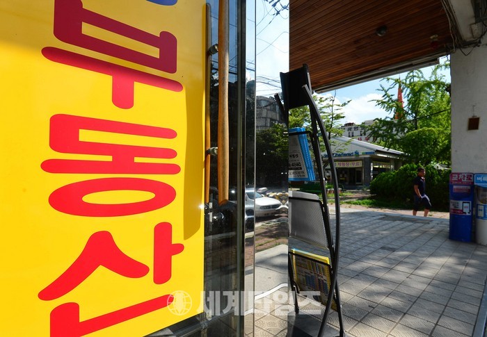 정부가 당정협의를 거쳐 부동산 종합대책을 2일 발표키로 한 가운데 1일 오후 서울 강남구 개포동의 한 부동산 밀집 상가가 한산한 모습을 보이고 있다. 이번 대책에는 투기과열지구와 다주택자 투기규제책이 포함될 것으로 보여 6·19 대책에 보다 강력한 규제책이 나올 것으로 전망된다. 2017.08.01사진제공 뉴시스