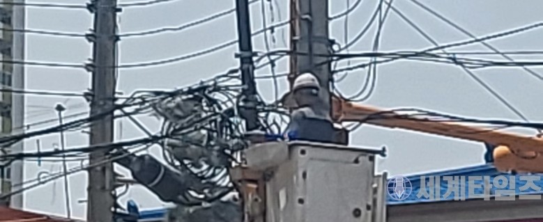 또한, 고소작업자는 차량에 "작업자는 반드시 고정 장치에 안전벨트를 고정 하고 안전 모를 착용후 작업 하십시요." 라는 위험 경고 문구가 게제 되어있음에도 관련법령을 무시하고 작업을 수행, 작업자들의 안전에 수수방관하는 대기업의 안전 불감증을 다시 한번 확인 할 수 가 있었다.