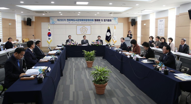 [익산=세계타임즈 이정술 기자] 익산시의회(의장 최종오)는 25일(수) 익산종합비즈니스센터에서 제280차 전북시·군의회의장협의회 월례회를 개최했다. 이날 행사에는 이기동 협의회장을 비롯한 전북시·군의회 의장과 정헌율 익산시장 등 관계자들이 참석했다.