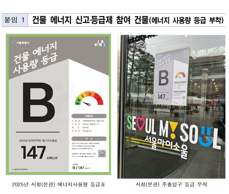 먼저 시는 연면적 1천㎡ 이상 공공건물과 3천㎡ 이상 비주거용 민간 건물의 건물 에너지 신고·등급제 참여를 적극 유도해 해당 규모 건물의 약 50%인 7,700개소까지 확대할 예정이다.