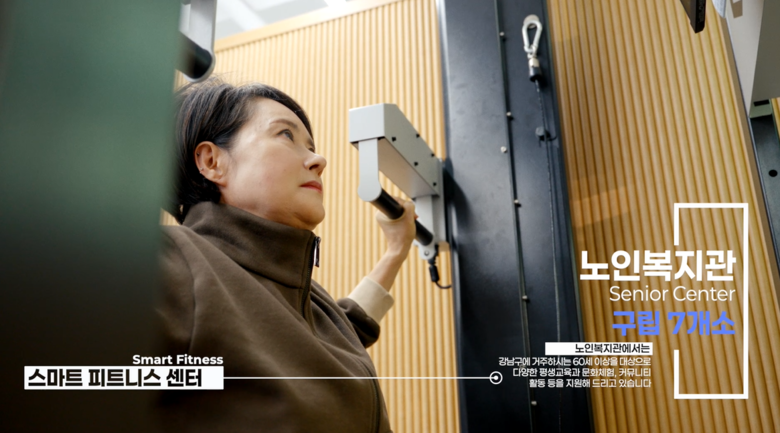 영상에는 노인복지관 7곳과 시니어센터 5곳, 데이케어센터 17곳, 의료복지시설 11곳을 비롯해 강남구 노인통합지원센터의 AI 반려로봇(초롱·다솜), 시니어클럽(일자리), 강남 시니어 재능플러스단, 경로당 189곳 등 주요 공간과 프로그램 이용 장면을 담았다. 초고령사회에서 노인복지시설이 기피 대상이기보다, 누구나 필요할 때 이용할 수 있는 지역사회 기반 시설이라는 점을 자연스럽게 전달하는 데 초점을 맞췄다.