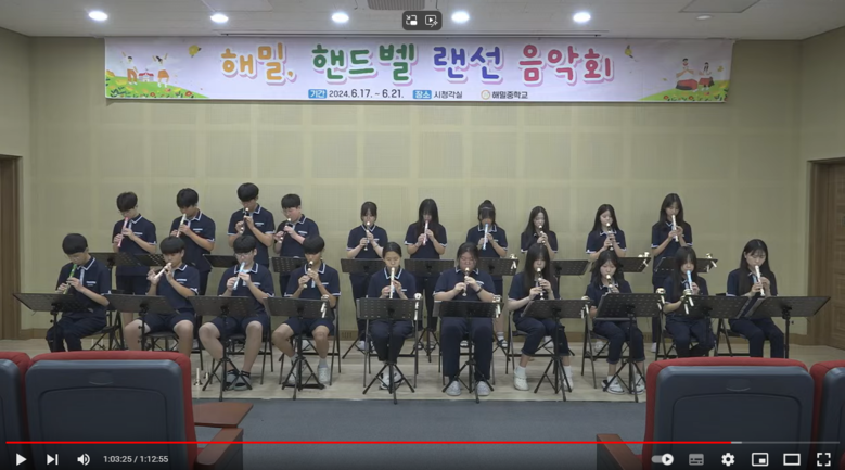 이번 랜선 음악회는 해밀중 2학년 모든 학생이 참여하였으며, 학생들은 음악 시간에 배운 핸드벨과 리코더 악기로 부모님께 멋진 공연을 선보이며 감사의 마음을 전하는 시간을 가졌다.