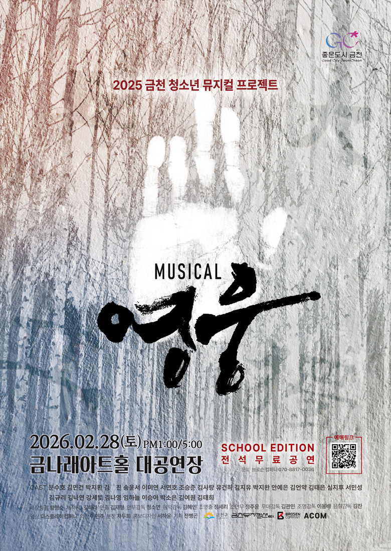 유성훈 금천구청장은 “청소년들이 방학 기간 많은 열정과 노력을 쏟아 무대를 준비한 만큼 주민들에게 큰 감동을 보여줄 것으로 기대한다”라며 “우리 구의 미래 예술 인재들의 지속적인 예술 활동을 위해 창작을 포함한 예술 콘텐츠들을 지속적으로 발굴해 서남권 문화도시로서의 위상을 당당히 높여나가겠다”라고 밝혔다.