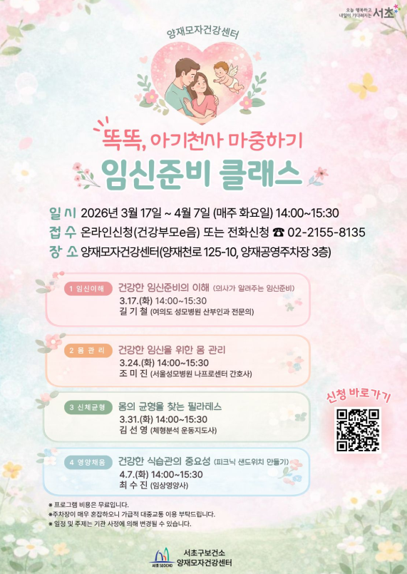 전성수 서초구청장은 “예비부부부터 조부모까지 온 가족이 함께 참여할 수 있는 가족친화형 프로그램을 강화하여 양재모자건강센터를 명실상부한 ‘지역사회 모자보건 거점’으로 도약시키겠다”며, “앞으로도 다양한 맞춤형 지원을 통해 아이 키우기 좋은 ‘출산 친화도시 서초’를 만드는 데 최선을 다하겠다”고 말했다.