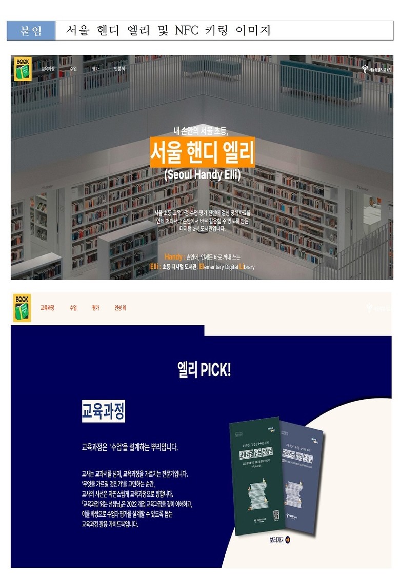 현재 서울 핸디 엘리에는 2022 개정 교육과정을 기반으로 한 ‘탐구 질문으로 설계하는 수업·평가 도움자료’ 등 다양한 초등 장학자료가 탑재돼 있으며, 향후 발간되는 자료도 e북 형태로 순차 제공될 예정이다.