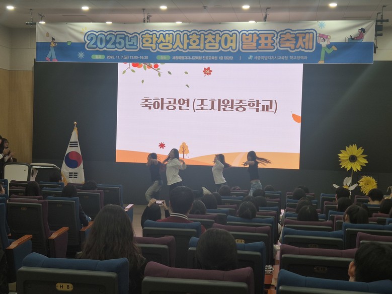 [세종 세계타임즈=이채봉 기자] 세종특별자치시교육청(교육감 권한대행 부교육감 구연희, 이하 세종시교육청)은 11월 7일(금)에 세종시교육청 진로교육원 1층 대강당에서 ‘2025년 학생사회참여 발표 축제’(이하 발표 축제)를 개최했다.