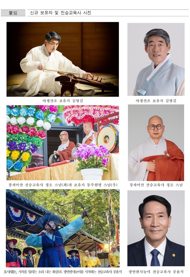 - 신규 전승교육사, 경제어산·장인편사놀이·한량무·재담소리 6명…역대 최다 배출