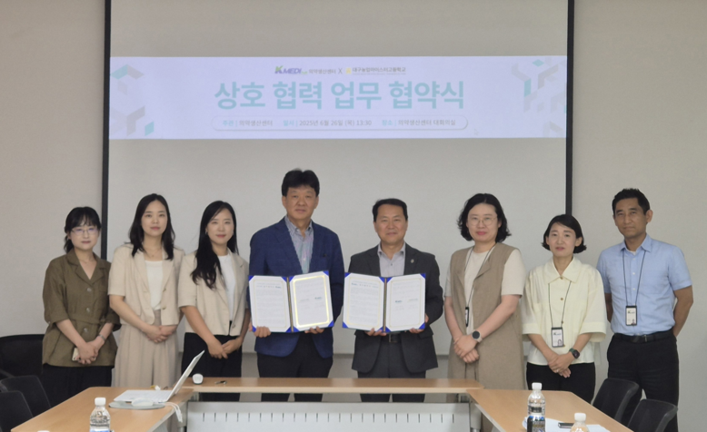 지난 6월 26일, 대구농업마이스터고는 케이메디허브와의 협약을 통해 미래 바이오산업 진흥에 공헌할 인재 양성을 위한 상호 협력을 약속했다. 대구농업마이스터고 그린바이오산업과는 이번 협약을 통해 그린바이오 소재를 활용한 건강기능식품 분석 및 바이오 분야 품질 관리 전문 실무 인력 양성을 목표로 하고 있다.