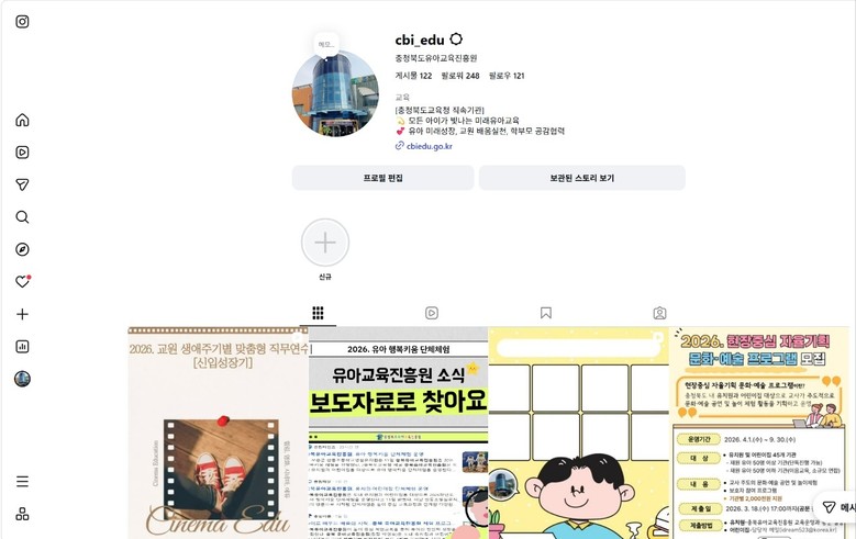 SNS 채널에서는 유아 체험 프로그램, 교원 연수, 가족 참여 프로그램 등 다양한 교육 활동과 행사 안내를 비롯해 유아교육 관련 정보와 자료를 주기적으로 제공하고 있다. 이를 통해 학부모와 교원들이 필요한 정보를 보다 쉽고 편리하게 확인할 수 있도록 돕고 있다.