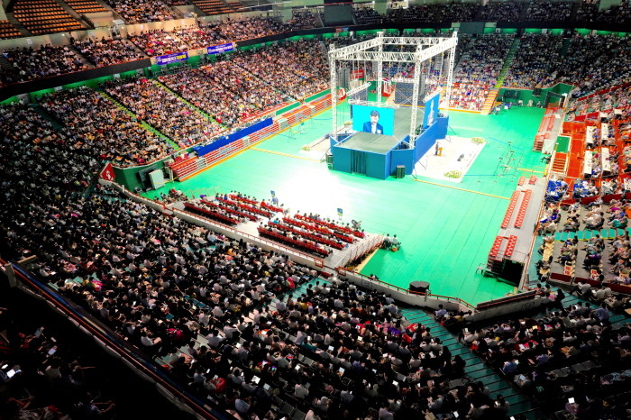 [세계타임즈 이락 기자] 6개 대륙 200여 나라에서 400개가 넘는 언어로 개최된 2019 '사랑은 없어지지 않습니다!' 마지막 날 대회가 8월 25일 부산 사직 실내체육관에서 성황리 개최됐다. 8월 23일~8월 25까지 열린 이번 대회는 평균 8,000여 명의 방문객이 몰렸다.