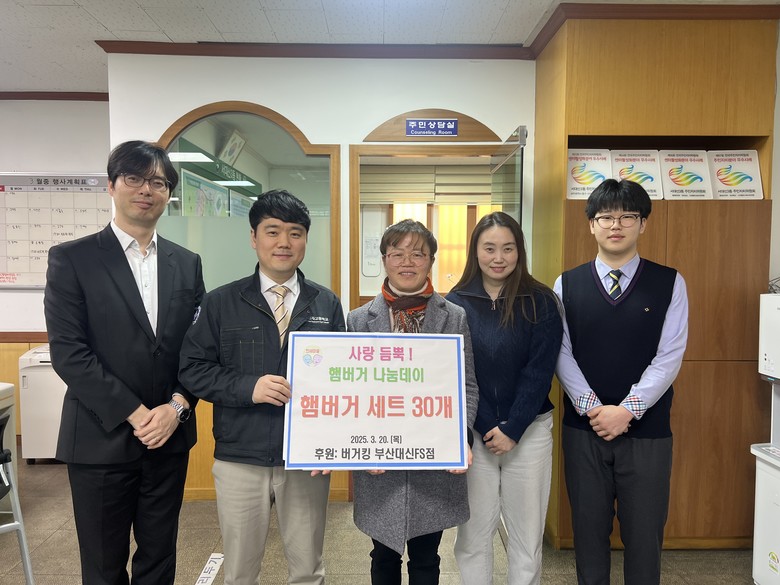 [서구 세계타임즈=이용우 기자] 부산 서구 서대신3동(동장 사공순옥)은 지난 20일 버거킹 대신FS점(대표 황태윤)으로부터 후원받은 햄버거 세트 30개를 경성전자고등학교 학생들에게 전달하여 따뜻한 나눔을 전했다.