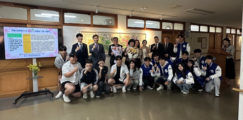 수완고등학교는 25일 교내 본관에서 기증자 김광옥·임혜숙 작가 부부, 정종재 교장 등 학교 직원, 학생회·학부모회 임원 등 30명이 참석한 가운데 ‘예술작품 기증식’을 개최했다.