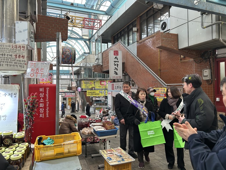 이 날 행정국 직원들은 명절 준비에 필요한 농산물, 식료품 등을 구매하며 소비 촉진을 통한 지역경제 살리기에 동참하였고, 안명환 구경시장 상인회장 등 전통시장 상인들을 만나 애로사항을 청취했다.