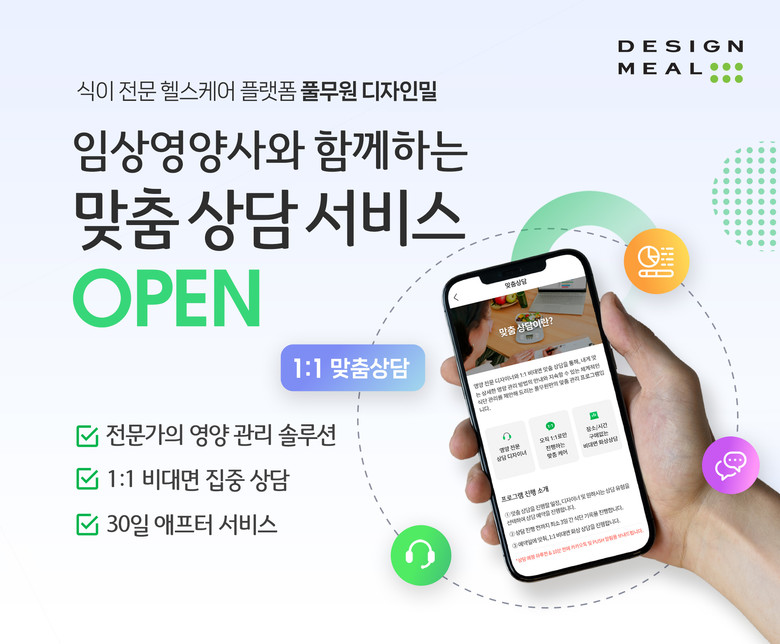 풀무원 디자인밀사업팀 강민건 팀장은 “상세한 영양 관리 방법은 물론 지속할 수 있는 체계적인 식단 관리를 고객에게 제안하고자 ‘일대일 비대면 영양상담 서비스’를 론칭했다”며 “앞으로 영양 상담을 연계한 서비스를 확대하여 더욱 많은 고객이 전문적인 디자인밀 식이관리 서비스를 경험하도록 할 것”이라고 말했다.
