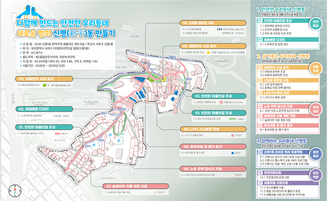 선정된 3곳은 ▲동구 범일1동 ▲부산진구 범천2동 ▲사하구 신평1동으로, 세부 실행계획에 따라 내년(2026년)부터 2030년까지 총사업비 133억 원(국비 93, 지방비 40)을 투입해 사업을 추진할 예정이다.