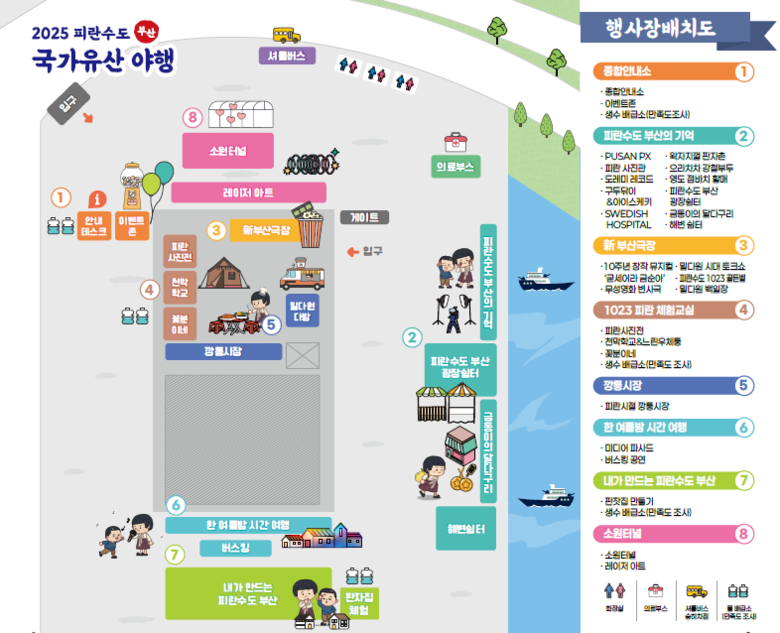 이번 행사는 2024년 5월 시 등록문화유산으로 지정된 '부산항 제1부두'를 중심 무대로 활용하여 ▲중구 부산항 제1부두~부산근현대역사관~부산기상관측소 ▲부산진구 부산시민공원 ▲남구 우암동 소막마을 주택 일원 세 구역으로 나눠 진행된다.