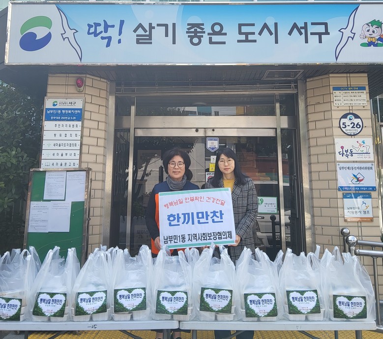 [서구 세계타임즈=이용우 기자] 부산 서구 남부민1동 지역사회보장협의체(위원장 하영숙)는 지난 10일,사회적 고립 우려 30세대에 반찬 전달과 안부 확인으로 고독사 예방에 앞장섰다.