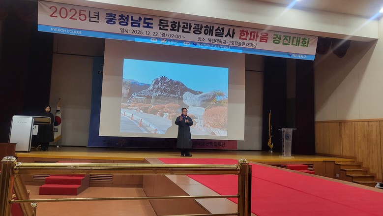 [충남 세계타임즈=이현진 기자] 충남도는 22일 혜전대 대강당에서 ‘2025년 문화관광해설사 한마음 경진대회’를 개최했다.