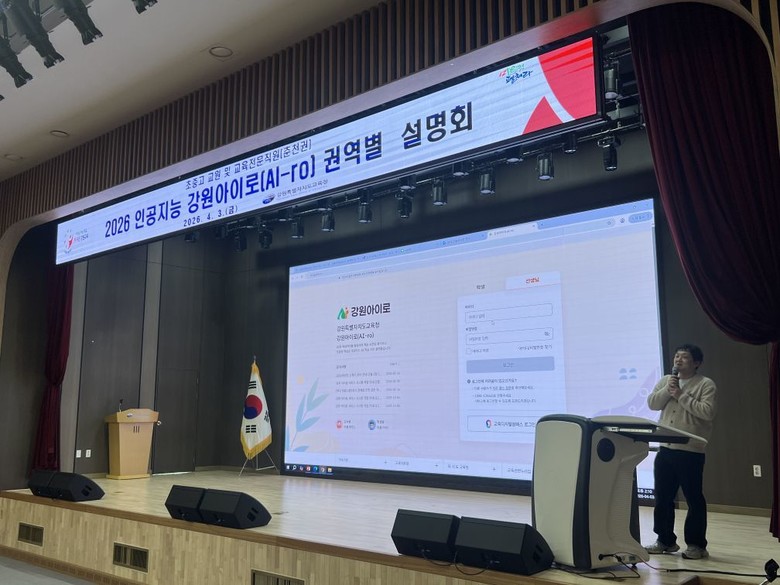 [강원도 세계타임즈=김민석 기자] 강원특별자치도교육청은 인공지능 기반 학생 맞춤형 교수학습 플랫폼 ‘강원아이로(AI-ro)’의 현장 활용도를 높이기 위해 2026년 4월 도내 권역별 설명회를 개최한다고 밝혔다.