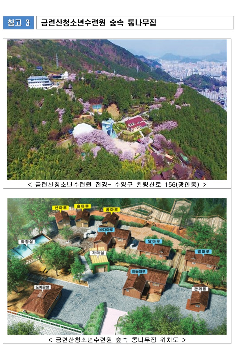 또한, '금련산청소년수련원 통나무집 숙박시설 할인권'은 부산의 도심 중앙인 황령산 중턱에 있는 금련산청소년수련원의 통나무집을 이용할 때 할인받을 수 있는 답례품이다. 금련산청소년수련원은 광안리 해수욕장과 광안대교, 해운대 바다가 훤히 보여 가족 단위 힐링 장소로도 유명한 곳으로 기부자에게 특색있고 매력 있는 답례품이 될 것으로 기대된다.
