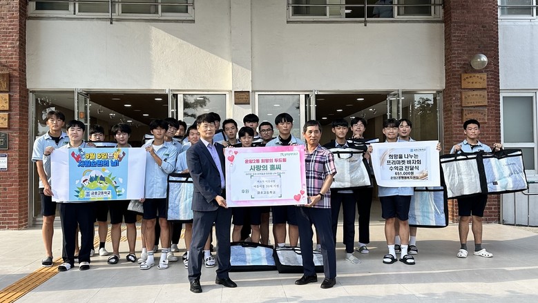 [광주 세계타임즈=손권일 기자] 금호고등학교(교장 류재문)가 9월 6일 ‘자원 순환의 날’을 맞아 ‘프리마켓 바자회’ 수익금 651,000원을 소외이웃을 위해 기부했다.