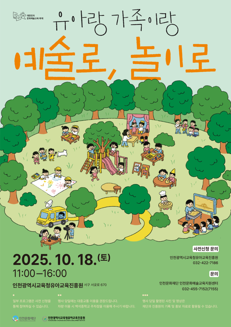 2024년에 이어 두 번째로 운영되는 이번 행사에서는 3~5세 유아와 학부모를 대상으로 한 공연, 예술 워크숍, 체험 프로그램 등 다양한 활동이 운영된다. 전년도 행사의 높은 만족도를 반영하여 예술과 놀이를 결합한 프로그램을 통해 유아의 창의력과 표현력 향상은 물론, 가족 간 협력과 소통을 증진하는 데 중점을 두었다. 자세한 프로그램 내용은 인천문화재단 홈페이지를 통해 확인할 수 있다.