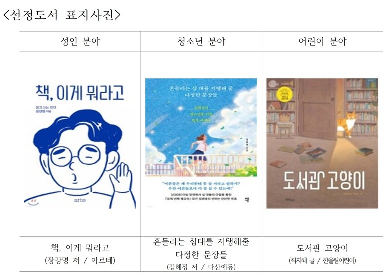 어린이 분야로는 최지혜 작가가 쓰고 그린 「도서관 고양이」를 선정했다. 도서관에 살게 된 고양이가 그림책 속 세상을 여행하며 도서관과 그림책의 즐거움을 전한다는 이야기다.