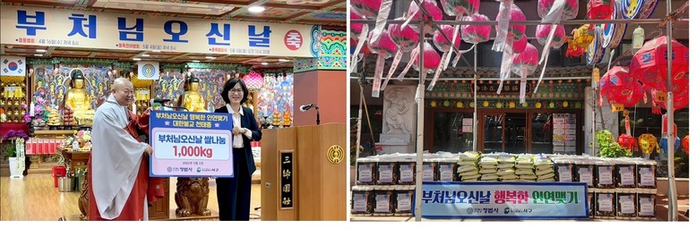 [서구 세계타임즈=이용우 기자] 부산 서구 동대신동 소재 대한불교 천태종 정법사(주지 갈수스님)는 지난 부처님 오신 날 맞이 서구에 성품 350만 원 상당의 백미 1,000kg(100포)와 생필품 두루마리 휴지(24롤) 100개를 지원하였다.