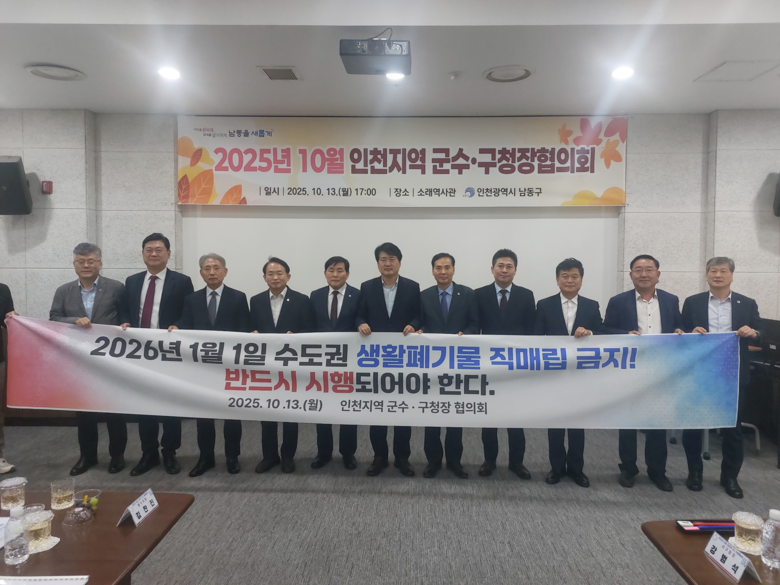 인천시는 10월 13일 남동구에서 열린 인천지역 군수.구청장 협의회에서 군.구 단체장과 함께 2026년 1월 1일부터 수도권 생활폐기물 직매립 금지는 법과 원칙에 따라 반드시 시행되어야 한다는 결의를 재차 다지며, 시민 불편 없이 생활폐기물 직매립 금지에 철저히 대비할 수 있도록 공동 대응방안을 모색했다.