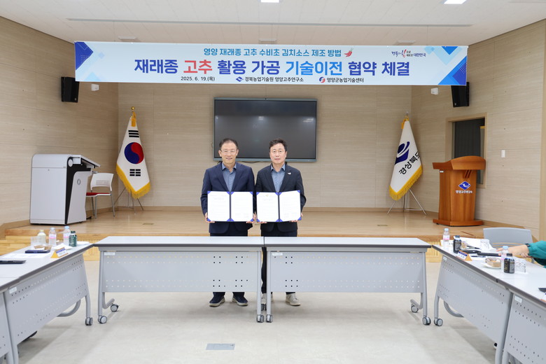 조영숙 경상북도농업기술원장은 “이번 기술이전은 영양 고유 품종인 수비초의 우수성을 재조명하고, 이를 지역 농산물 가공기술과 연계함으로써 고추 산업의 새로운 활로를 여는 계기가 될 것”이라며, “영양군농업기술센터와의 협력을 통해 수비초 김치소스가 지역을 대표하는 고부가가치 가공품으로 자리매김하길 기대한다”고 밝혔다.