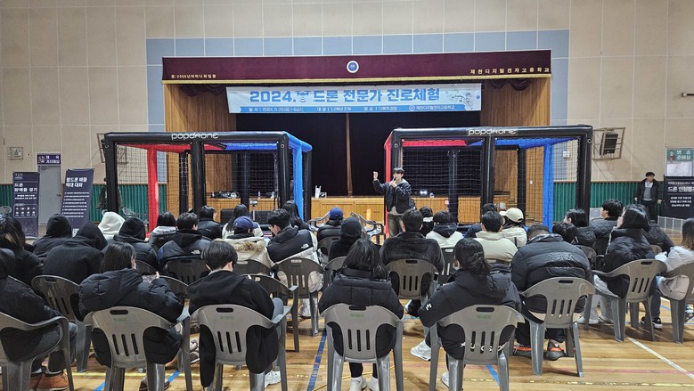 [충북 세계타임즈=이현진 기자] 제천디지털전자고등학교(교장 노재민)는 29일(금), 미래 신산업 분야의 핵심 기술로 떠오르고 있는 드론을 활용하여 학생들의 진로 탐색을 지원하는 드론전문가 진로 체험 프로그램을 운영하였다.