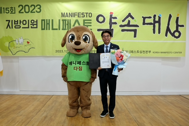 사단법인 한국매니페스토실천본부가 주관하는 ‘매니페스토 약속대상’은 지방의회 역량강화 및 주민 신뢰기반을 구축하기 위해 매년 전국 지방의원을 대상으로 공약이행 분야와 좋은 조례 분야로 나눠 시상한다.