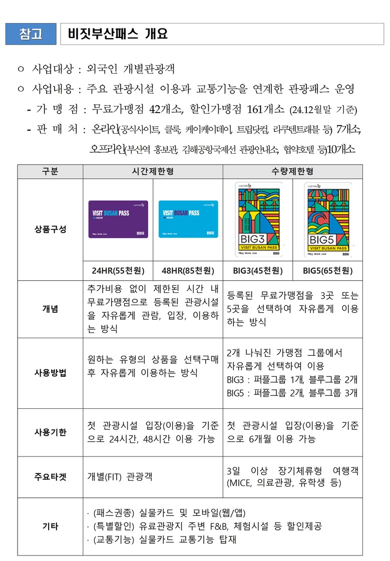 시의 올해 '부산비짓패스' 목표 판매량은 24만 매로, 다가오는 설 명절에는 원 플러스 원(1+1) 할인 이벤트 등 다양한 프로모션을 추진한다.