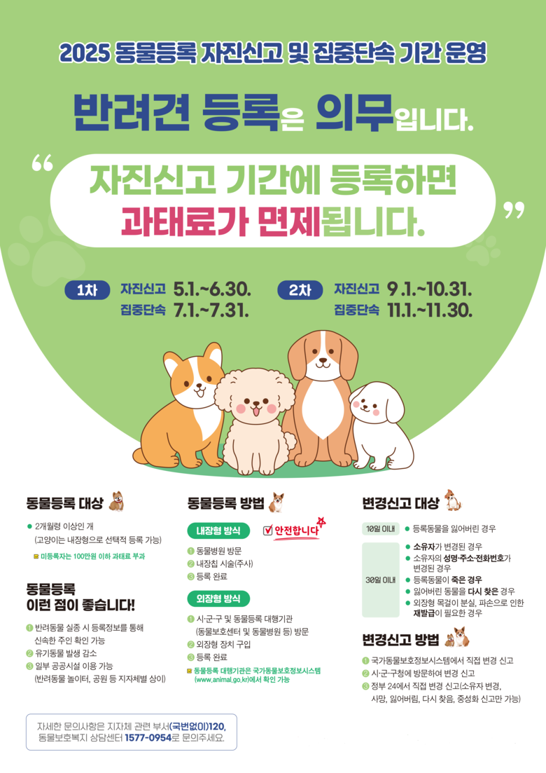 울산시 관계자는 “동물 등록은 반려견을 가족의 일원으로 받아들이고 지키기 위한 첫걸음”이라며, “올해는 특히 동물등록제를 보다 널리 알리고 참여를 독려하기 위해 신고기간을 2회로 확대한 만큼 반려인들이 적극 협조해 줄 것”을 당부했다.
